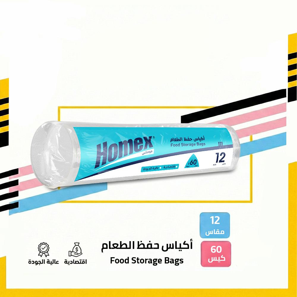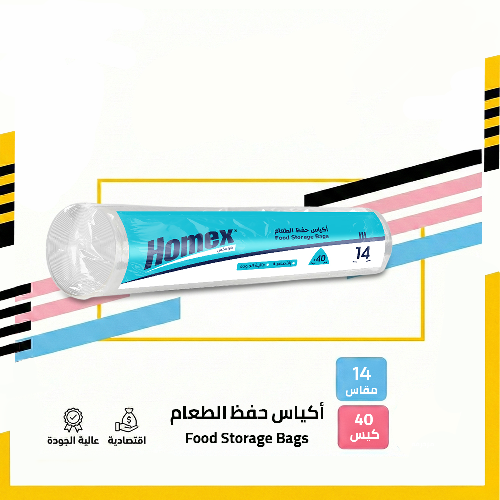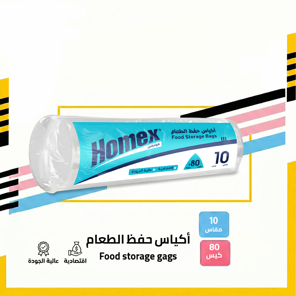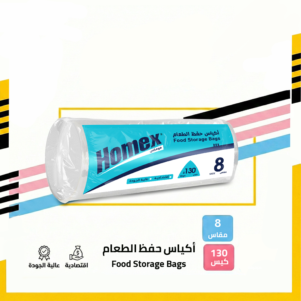 أكياس حفظ الطعام من هومكس مصممة لتوفير طريقة عملية وآمنة لحفظ الطعام وتنظيمه بشكل يومي، مع خامة مناسبة للاستخدام الغذائي تساعد على الحفاظ على جودة الطعام ونظافته.